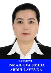 Исмаилова Умида Абдуллаевна 1991 года рождения, образование высшее.
